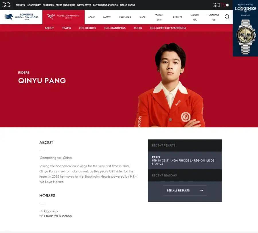 环球马术冠军赛官网介绍中国骑手庞钦宇